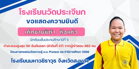 ยินดีต้อนรับเข้าสู่เว็บไซต์ โรงเรียนวัดประเจียกค่ะ...