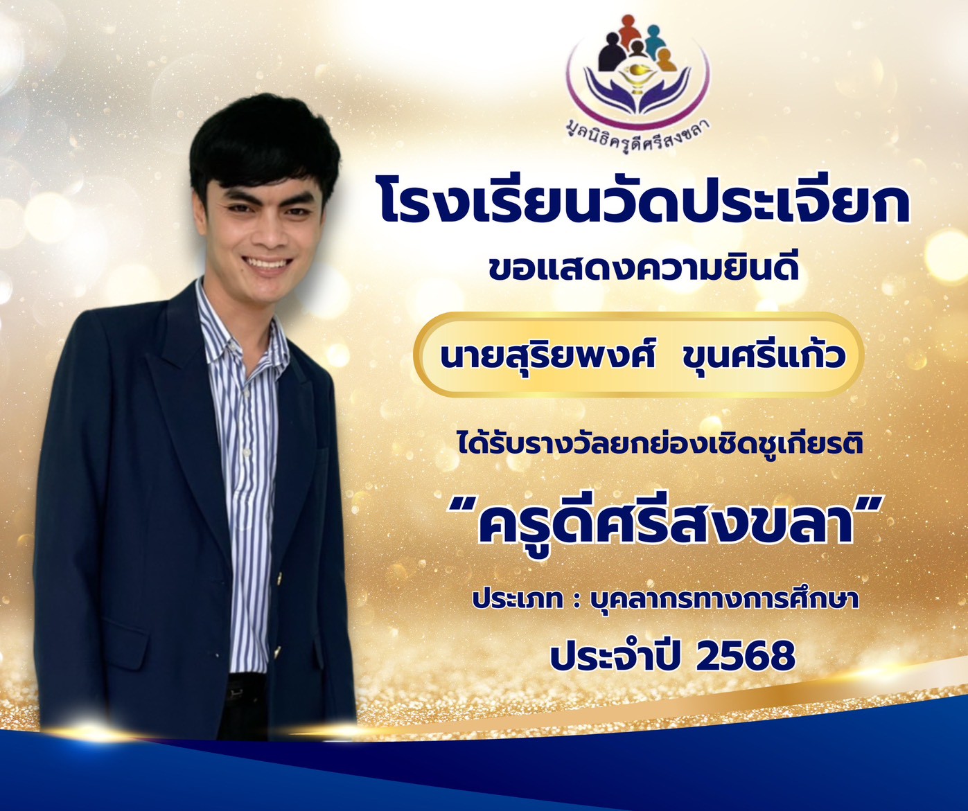 รางวัลเชิดชูเกียรติ "ครูดีศรีสงขลา" 01 ม.ค. 69